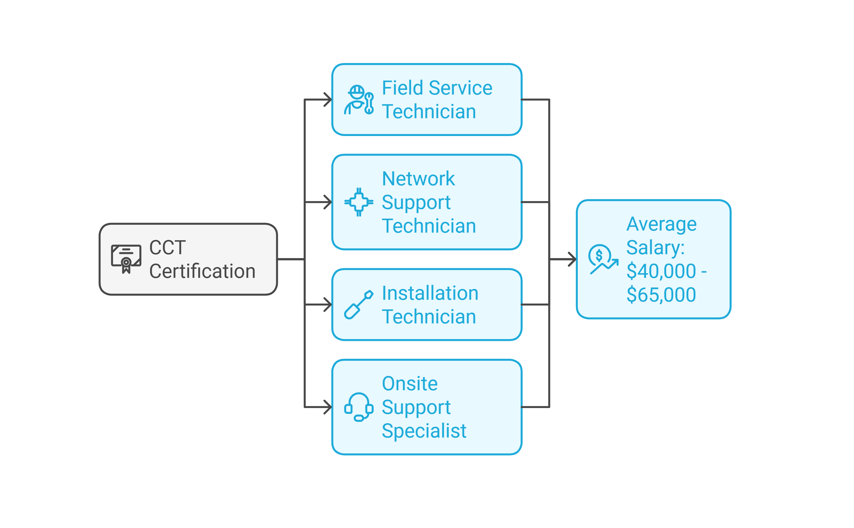 With a CCT, you can work as a field service technician, installation specialist, or support technician. It's particularly valuable for roles that involve hands-on equipment installation and basic troubleshooting.